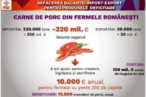 Ajutorul de stat pentru crescătorii de porci ar urma să fie acordat ar urma să fie 10.000 euro pentru 200 capete porci crescuți în exploatația beneficiarului de la care se obține o producție de minimum 20 tone carne, în urma sacrificării în abatoare autorizate. Cuantumul unitar-scrie proiectul publicat de MADR- este echivalentul în lei a 50 euro/cap”.