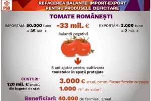 Cel pentru crescătorii de roșii prevede acordarea unei subvenții de 3000 de euro pentru 1000 de metri pătrați de spații protejate destinate cultivării tomatelor de pe care se obține minim două kg de produs/metrul pătrat.