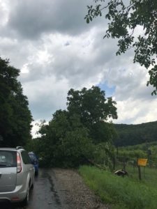 Aversele de ploaie și vijelia în reprize din această după amiază a provocat probleme serioase în trafic. Pe drumul Bistrița-Năsăud mașinile circulă bară la bară și încearcă să evite crengile celor câțiva copaci doborâți de vânt. Șoferii se plâng că și în reprizele când ploaia s-a domolit se circulă foarte greu (foto drumul spre Năsăud)