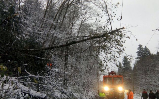 Un copac căzut pe linia de înaltă tensiune a căii ferate între Șieu și Șieuț a blocat în noaptea de sâmbătă spre duminică două garnituri de tren.