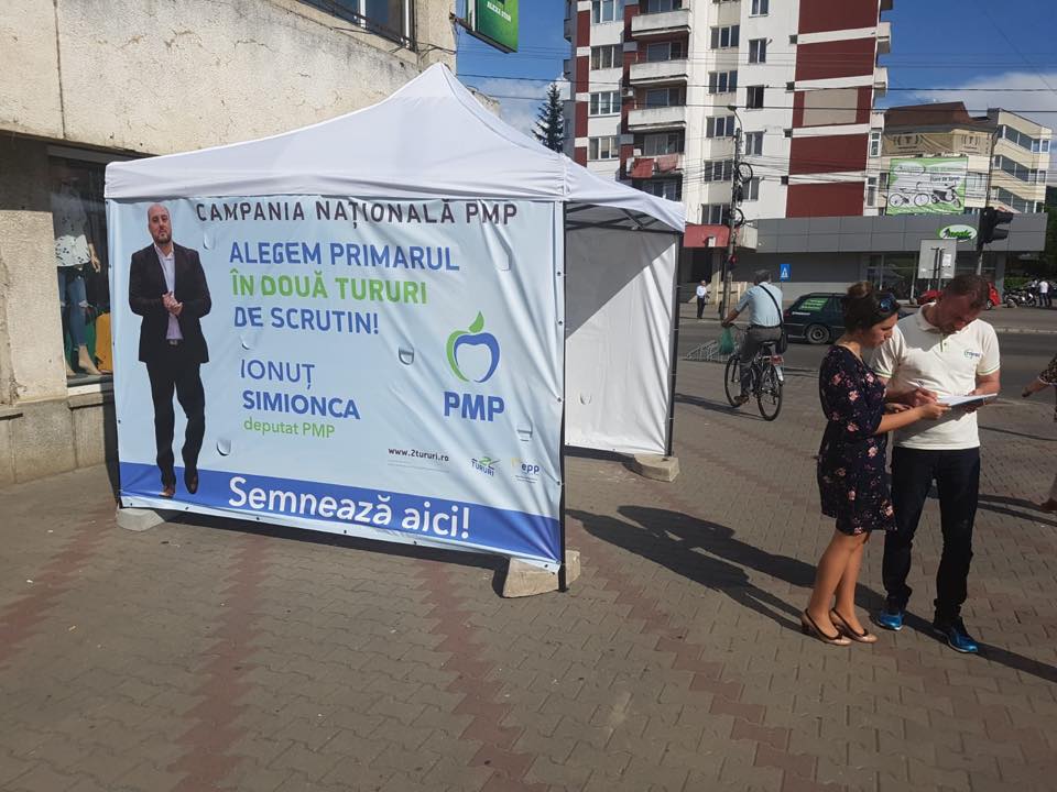PMP-ul a trecut la etapa următoare a campaniei de strângere de semnături pentru revenirea la al doilea tur de scrutin în alegerea primarului, după ce în mai multe reprize voluntarii partidului s-au mobilizat în funcție de evenimente. Deputatul Ionuț Simionca a anunțat astăzi pe facebook că echipa sa a reușit să instaleze trei corturi destinate adunării de semnături, după ce a obținut aprobările de instalare de la Primăria Bistrița: ”Stimaţi bistriţeni, PMP a început campania de strângere de semnături pentru alegerea primarului în două tururi. Începând de astăzi, vă aşteptăm la corturile noastre amplasate în Municipiul Bistrița:- Strada Andrei Mureșanu în parcul de lânga blocul Lama- Bulevardul Decebal colț cu strada Cuza Voda-– Bulevardul Independenței, platforma de la Biserica Sfânta Ana” anunță parlamentarul PMP pe pagina sa de facebook.