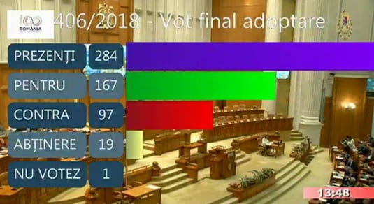 De partea controversatelor modificări s-au poziționat deputații PSD și ALDE, însă voturile lor n-ar fi fost de ajuns în condițiile în care 8 dintre parlamentarii puterii n-au ajuns astăzi la vot. Pentru că UDMR s-a abținut de la vot, coaliția puterii a apelat la deputații minorităților naționale. Opt dintre aceștia precum și un deputat de la PMP, Adrian Mocanu, pe care partidul a anunțat după vot că-l va exclude, au spus da modificărilor la Codul Penal.