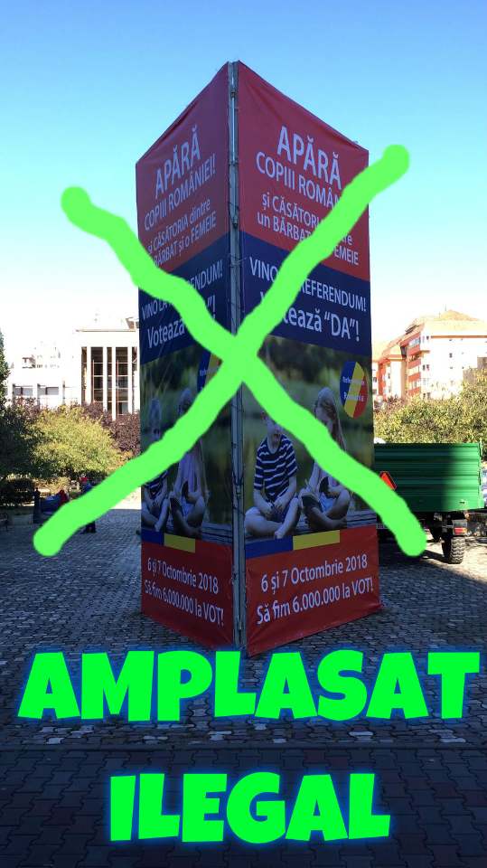 USR a obținut de la Biroul Electoral Județean îndepărtarea afișajului uriaș pro-referendum din Piața Eminescu.