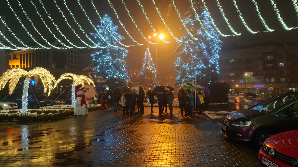 La chemarea Asociației Bistrița Civică, făcută pe un grup de socializare mai mulți bistrițeni s-au adunat sâmbătă seara în Piața Petru Rareș pentru o adunare comemorativă la 29 de ani de la Revoluția din decembrie 1989.