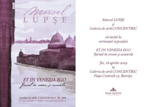 ”Et in Veneția Ego” are vernisajul la Bistrița exact la un an de la vernisajul, chiar de la Veneția a expoziției personale Marcel Lupșe, intitulată ”Ofrandă” . Aceasta a avut loc in aprilie anul trecut la Noua Galerie a Institutului Român de Cultură şi Cercetare Umanistică de la Veneţia. Șederea la Veneția vreme de mai multe zile (expoziția a stat atunci pe simeze trei săptămâni ) a rodit în tema noilor lucrări de grafică și pictură, prezentate la Concentric.