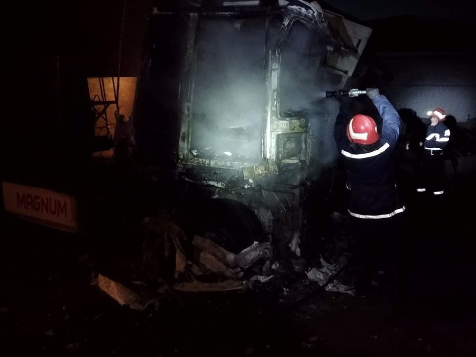 Un tir fără marfă a ars în întregimea în Poiana Ilvei în curtea în care era parcat. Incendiul a izbucnit luni noaptea la puțin timp după ce tirul se întorsese dintr-o cursă.