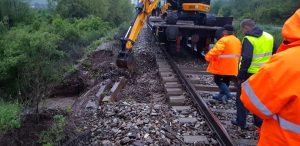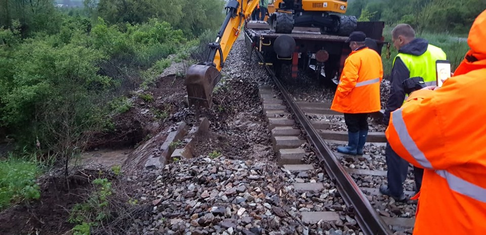 Inundațiile au ținut trenul Bistrița-București blocat la Mărișelu. A plecat către capitală la ora la care ar fi trebuit să ajungă