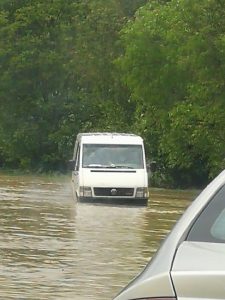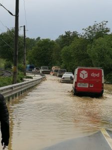 Precipitațiile abundente căzute în această după amiază au făcut din nou prăpăd: drumuri județene inundate și greu de tranzitat, calea ferată între Nepos și Rebrișoara la km 36 blocată de aluviuni și un accelerat care a rămas în zona Garii Feldru, pentru ca n-a mai putut înainta.