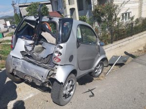 Cabina unui tir a luat foc din mers în Mijlocenii Bârgăului, iar tirul a ajuns într-un șanț după ce a lovit în prealabil o mașină care staționa.