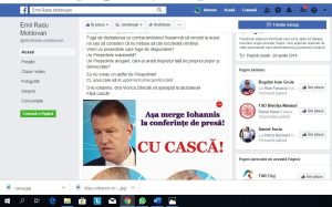 Liderul județean al PSD, Radu Moldovan, ignorând și el că e vorba de un fake-news grosolan, dovedit ca atare cu fotografii și pe care chiar unul dintre primii distribuitori, primarul Gabriela Firea, l-a și șters între timp de pe pagina sa de facebook, s-a apucat și el să scrie comentarii în jurul minciunii : ” Domnul Iohannis ne-a demonstrat și în această seară că este o marionetă! În incapacitatea sa de a vorbi liber, pare că poartă o cască prin care i s-au suflat răspunsurile la întrebările jurnaliștilor și același zâmbet sfidător! …” este o parte din comentariul interminabil postat de Radu Moldovan la fotografiile cu așa zisa cască din urechea președintelui. (FOTO pagină)