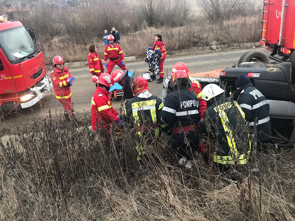 Potrivit polițiștilor șoferul, un bărbat în vârstă de 64 de ani, din Bistrița, în timp ce conducea un autoturism pe drumul județean 151, pe direcția Blăjeni-Sigmir, nu a adaptat viteza la condițiile de drum, a pierdut controlul acestuia și s-a răsturnat. În urma accidentului, șoferul și o pasageră au fost răniți, fiind transportați la spital, după descarcerarea acestora.