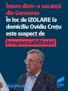 Călin Stan mai spune și că în pofida faptului că Ovidiu Crețu nu a încercat să se izoleze pentru 14 zile, va ajunge în acest an tot la izolare la domiciliu, însă din iunie încolo: ” Un gest de autoizolare și un eventual test medical ar fi fost o dovadă de mai multă maturitate. Oricum, după alegerile locale din acest an, viitorul fost primar PSD al Bistriței va fi izolat la domiciliu. Ca simplu cetățean..” a comentat președintele USR Bistrița.