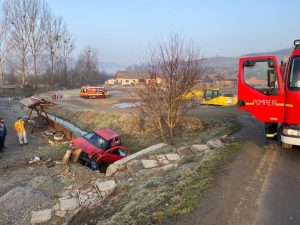 Pentru bărbatul accidentat a fost nevoie de intervenția echipajului de la descarcerare după ce acesta a rămas captiv în mașină cu picioarele prinse. Pompierii care încadrează echipajul de descarcerare a fost obligat să  îndepărteze portierele pentru a extrage victima în condiții de siguranță. De asemenea, bornele de la acumulator au fost îndepărtate.  Echipajul de terapie intensiva mobila SMURD l-a preluat apoi pe bărbatul în vârstă de aproximativ 44 de ani, conștient, cu leziuni la nivelul membrelor inferioare.