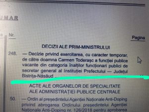 Decizia  de numire a unui alte persoane a apărut deja în Monitorul Oficial sub semnătura premierului Ciucă. În locul lui Eugen Curteanu a fost numită secretar general, cu mandat temporar, Carmen Toderașc, sefa juridicului din Instituția Prefectului.