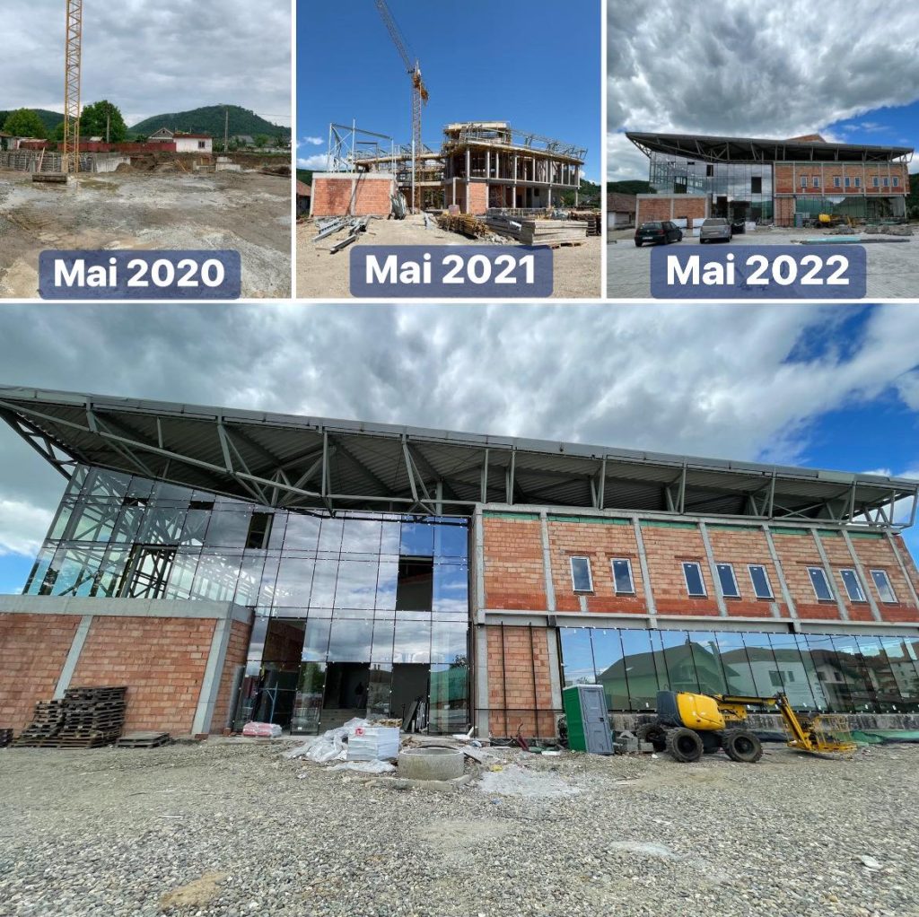 Centrul Proiectului Cultural Liviu Rebreanu din Beclean, o clădire care va costa la final 15,6 milioane de euro din fonduri europene avansează catre finalizare. Primarul Nicolae Moldovan a publicat fotografii cu stadiul santierului comparativ cu 2021 si 2020.