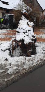 Vântul puternic din aceasta noapte a retezat pur si simplu o salcie bătrână de pe marginea drumului din strada Dimitrie Cantemir, care s-a prăbușit peste o autoutilitară încărcată cu geamuri termopan, parcată în curtea unei firme din imediata vecinătate. Din fericire, la ora incidentului în mașină nu era nimeni, însă geamurile termopan din mașină au fost parțial compromise.