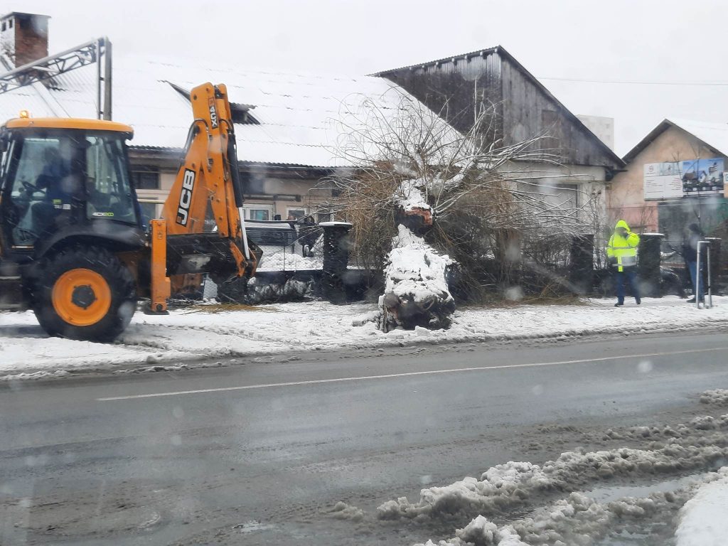 Vântul puternic din aceasta noapte a retezat pur si simplu o salcie bătrână de pe marginea drumului din strada Dimitrie Cantemir, care s-a prăbușit peste o autoutilitară încărcată cu geamuri termopan, parcată în curtea unei firme din imediata vecinătate. Din fericire, la ora incidentului în mașină nu era nimeni, însă geamurile termopan din mașină au fost parțial compromise.
