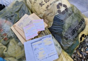 Invitație la amendă: o femeie și-a lăsat o copie după buletin în sacii cu deșeuri abandonate