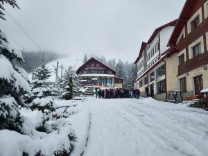 Peste 100 de elevi aflați la Complexul Alpina Blazna ajutați de jandarmii bistrițeni să coboare în siguramță de la Complex. O parte din drum l-au parcurs pe jos
