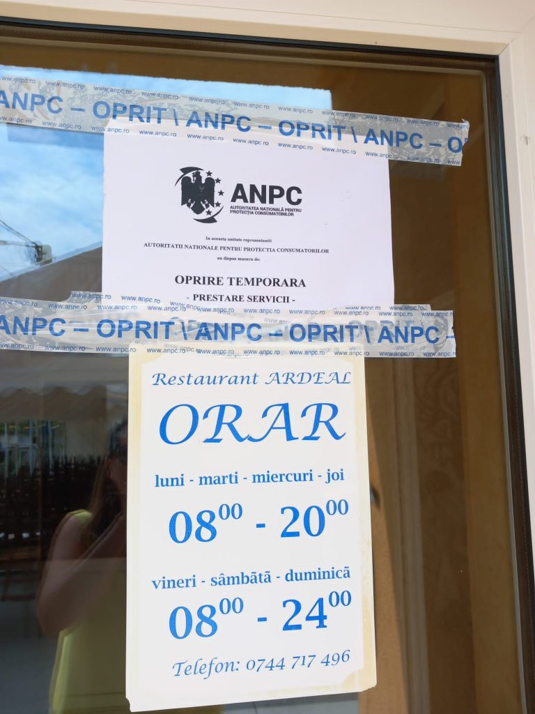 Restaurantul care a furnizat mâncarea la petrecerea de botez din Dumitrița, în urma căruia 17 oameni au ajuns cu toxiinfecție alimentară în spital a fost închis temporar astăzi de comisarii de la Protecția Consumatorilor Bistrița-Năsăud, iar proprietarul a primit două amenzi uriașe, în total de 50 000 de lei pentru condițiile în care-și ținea și prepara produsele. E vorba de un restaurant-cantină accesibil ca preț din Bistrița cu un mare volum de desfacere, protagonist al unui scandal uriaș în 2019, când a primit amenzi uriașe pe banda rulantă de la toate autoritățile de control din județ, după un filmuleț aparut pe facebook în care un angajat dezgheța pulpe de pui izbindu-le de pavimentul din curte.