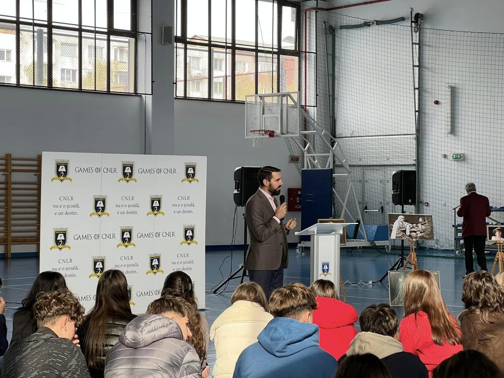 ”Un nepot vorbește altor nepoți. Doar că acest nepot este Principele Nicolae al României, nepotul MS Mihai I” a scris pagina oficială a Colegiului Național Liviu Rebreanu, care a atașat și mai multe fotografii de la evenimentul organizat în sala de sport a Colegiului, în condițiile în care sala de festivități și întreg corpul principal al Colegiului e în șantier de reabilitare.