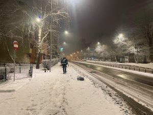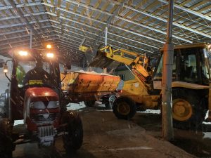” Acționăm cu 17 utilaje, din care 14 autovehicule dotate cu lamă și sărăriță, două încărcătoare, plus o autocisterna cu lamă și bazin cu clorură de calciu pentru tronsoanele cu asfalt nou. Pe parcursul nopții, după ce se oprește ninsoarea, vom interveni și pe trotuare” a precizat primarul Bistriței pe facebook. Postarea este ilustrată de fotografii cu utilajele ieșind din depozitul în care s-au aprovizionat cu material antiderapant sau pe străzi la curățarea carosabilului.
