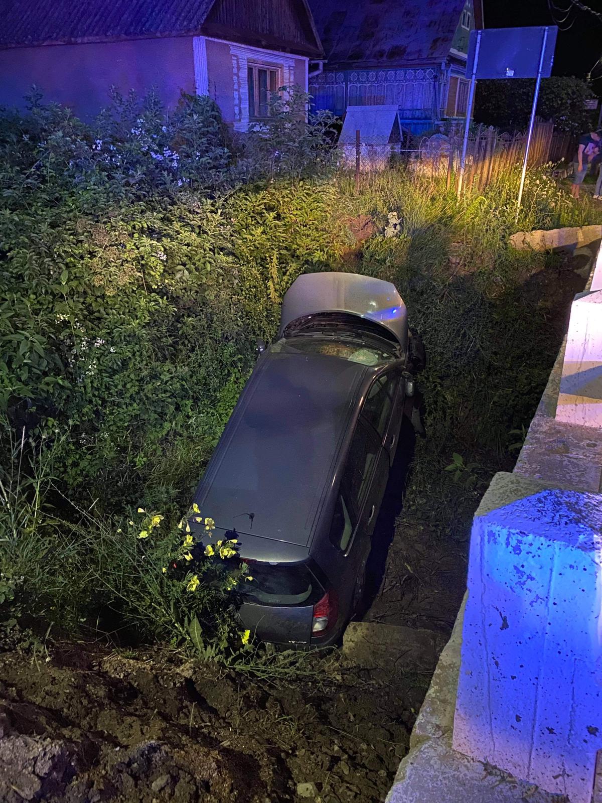 O șoferiță de 23 de ani a plonjat cu mașina într-un pârau, în Parva.