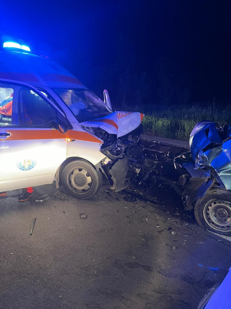 O ambulanță cu girofarul și semnalele acustice pornite care transporta de urgență un pacient de la Beclean la Bistrița a fost lovită azi noapte în plin, la Șieu Sfântu, pe un drum național de mașina unui botoșănean.
