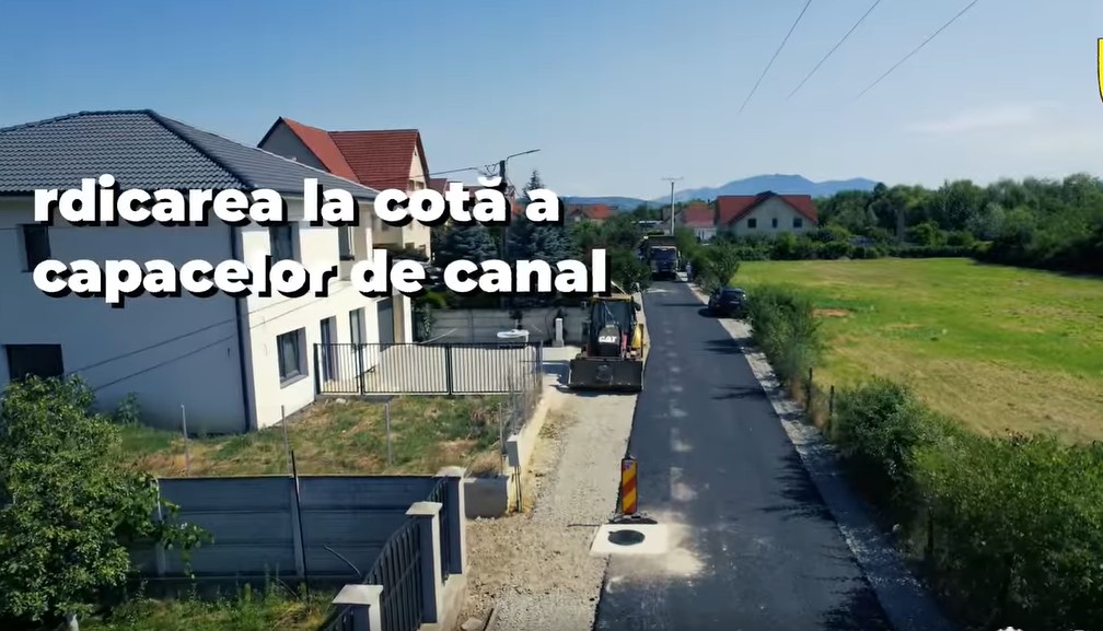 Cei care au lucrat la stradă au avut grijă inclusiv cu ridicarea capacelor de canal la nivelul străzii: