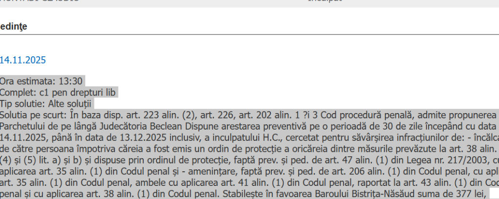 Instanța din Beclean a reținut în dreptul bărbatului, Claudiu H. nu doar încălcarea ordinului de protecție ci și infracțiunea de amenințare: