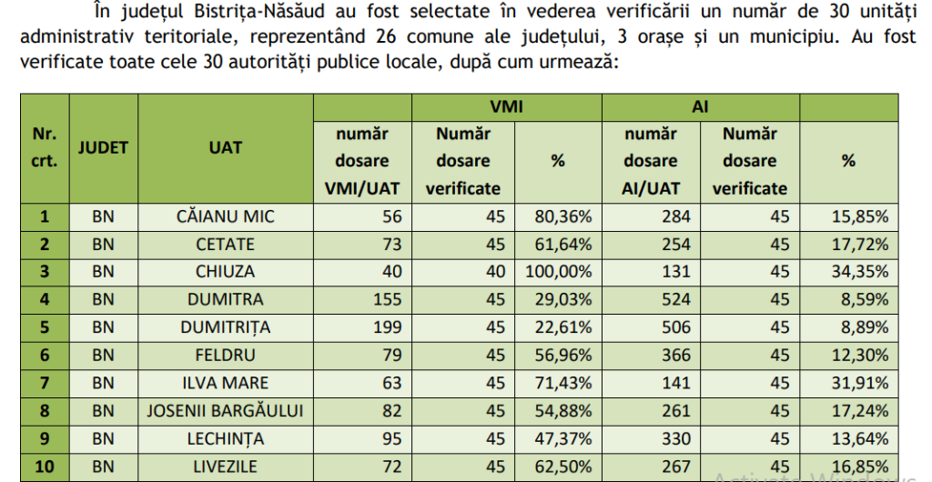 Una dintre verificari a fost tematică, dispusă de la centru în 2025, atunci când inspectorii au verificat cam 34 % din dosarele de ajutoare de încălzire pe lemn de foc, iar o alta, inopinată, precizează conducerea AJPIS BN la solicitarea Bistrița Express, s-a făcut în urmă cu o lună. Niciuna dintre verificari n-a depistat însă frauda.
