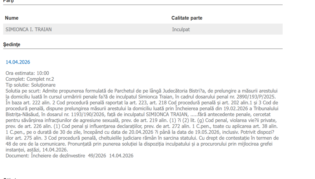 UPDATE, ora 16,00: instanța de drepturi și libertăți a Judecătoriei Bistrița a hotărât astăzi, 14 aprilie să prelungească cu încă 30 de zile arestul la domiciliu al primarului suspendat, la cererea procurorilor. Noul mandat este valabil până în 19 mai 2026.