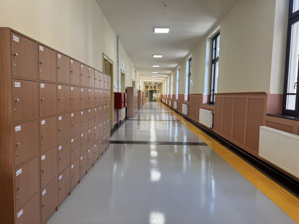 Încheierea lucrărilor, care pune capăt relocării pe la alte unități de învățământ din oraș, în ture de după amiaza a celor 850 de copii si a unui mare număr de profesori, a fost marcată astăzi, 15 aprilie de administrația orașului printr-o ceremonie și o zi a porților deschise.