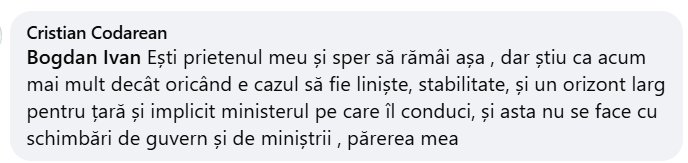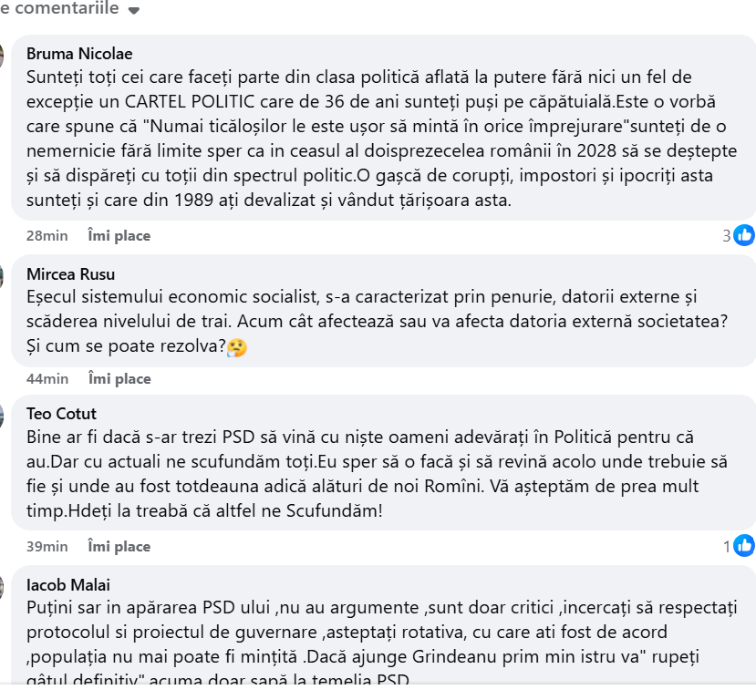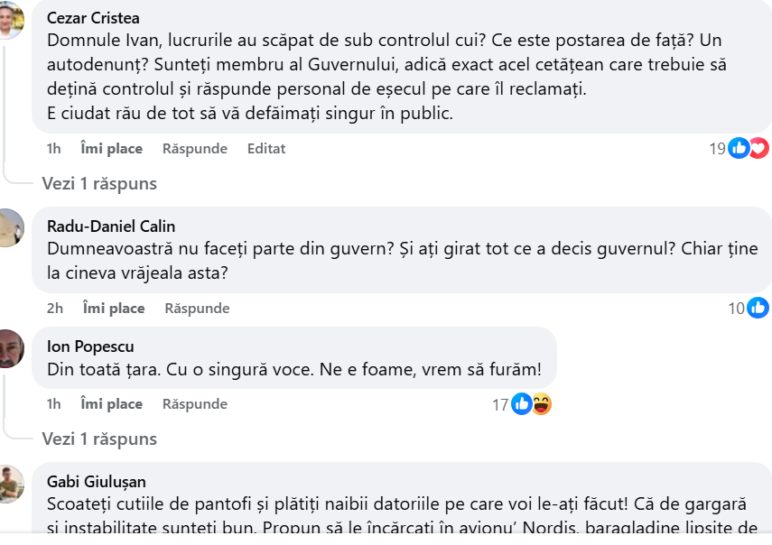 Comentariile la postările lui Bogdan Ivan, Daniel Suciu si Radu Moldovan sunt însă neobișnuit de critice, majoritatea reproșându-le că aruncă țara în criză într-un moment complet nefavorabil, în condițiile în care reacțiile postacilor de partid nu fac față valului negativ.