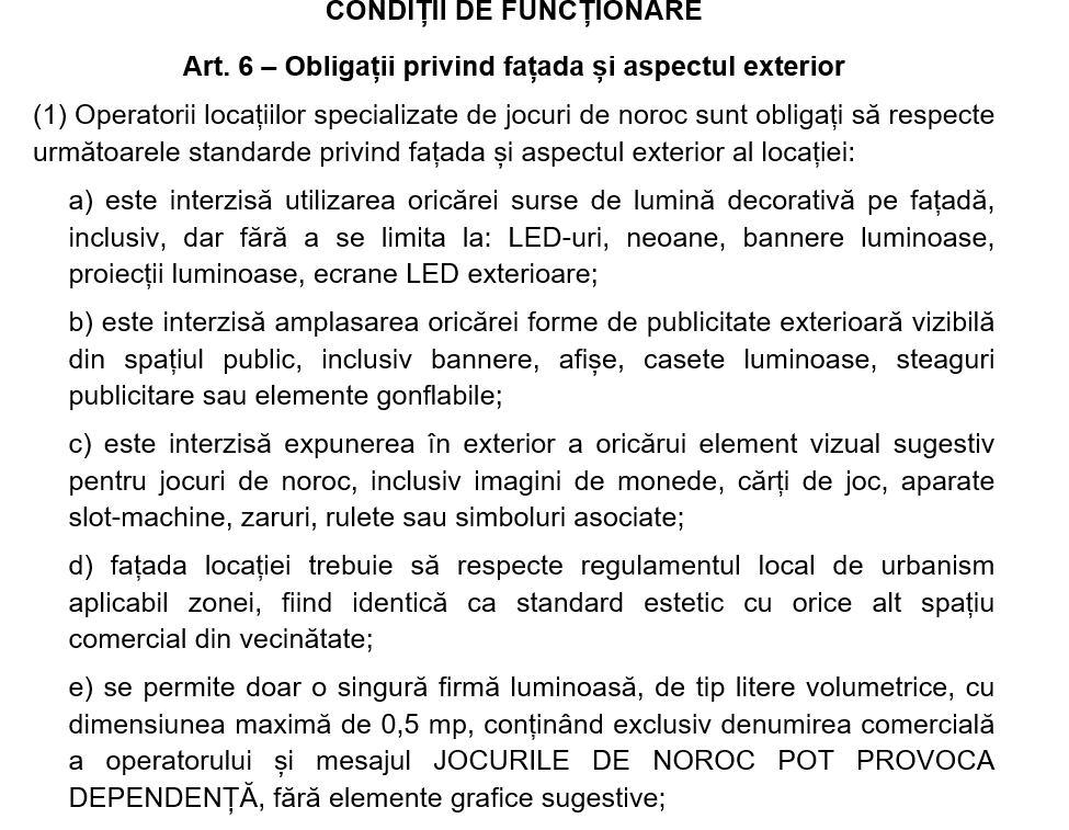 Textul proiectului de regulament a fost pus în transparență decizională din 7 aprilie până luni, 20 aprilie 2026 inclusiv, termen până la care bistrițenii au putut transmite propuneri municipalității. Regulamentul are doar câteva restricții: sălile nu pot funcționa în spații din locuințe colective, decât dacă ”spațiul în cauză a avut destinația de spațiu comercial stabilită” și interdicția de a nu fi poziționate la mai puțin de 100 de metri de școli sau grădinițe, o hartă cu zonele de excludere urmând sa fie publicată anual în 1 septembrie.